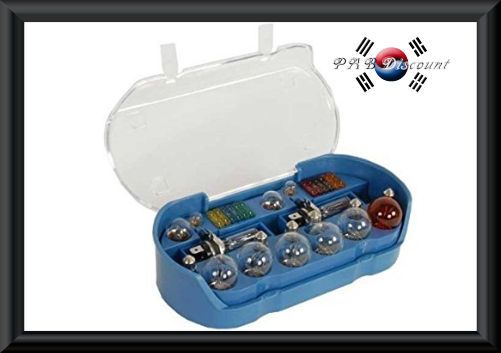 Coffret de 30 pièces: ampoules multiples et fusibles de diverses puissances, ampoules de phares H4 et H1.